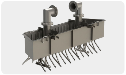 El distribuidor de líquido MaxiFlow de Clark Solutions se ha desarrollado para optimizar la transferencia de masa de gas líquido. Este consiste de varios canales en paralelo con innumerables puntos de irrigación independientes.